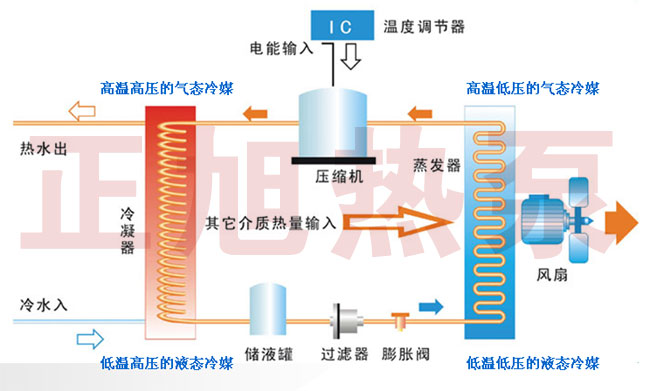 空氣能熱泵熱水器(即:空氣源熱泵)是創新一代的熱水設備,是一種高效集熱并轉移熱量的裝置,用電能驅動熱泵,由熱泵裝置中的壓縮機、電子膨脹閥、干燥過濾器、四通閥、蒸發器、套管冷凝器、風機等主要部件組成,它成功地運用了逆卡諾原理,壓縮機從蒸發器中...