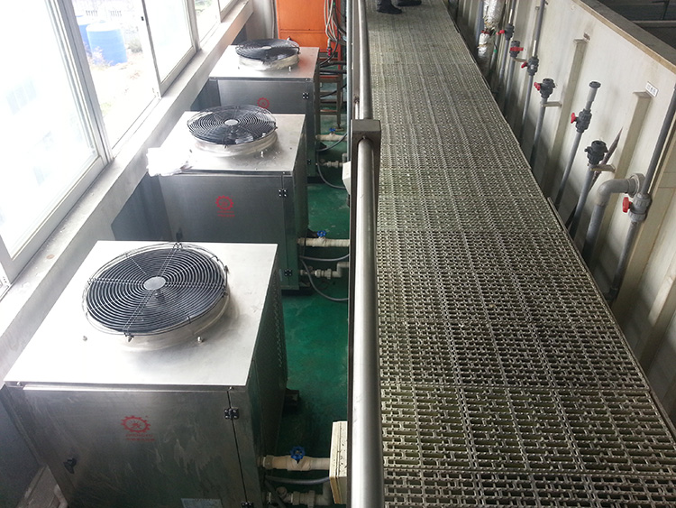廣東沙井某電鍍公司,由于天然氣漲價及供氣不穩定原因,要把車間現有的天然氣鍋爐給停掉,使用高溫空氣能熱泵來制取熱水。經過一番市場考察和產品對比后,選擇了正旭熱泵品牌來完成車間鍋爐節能改造工作。