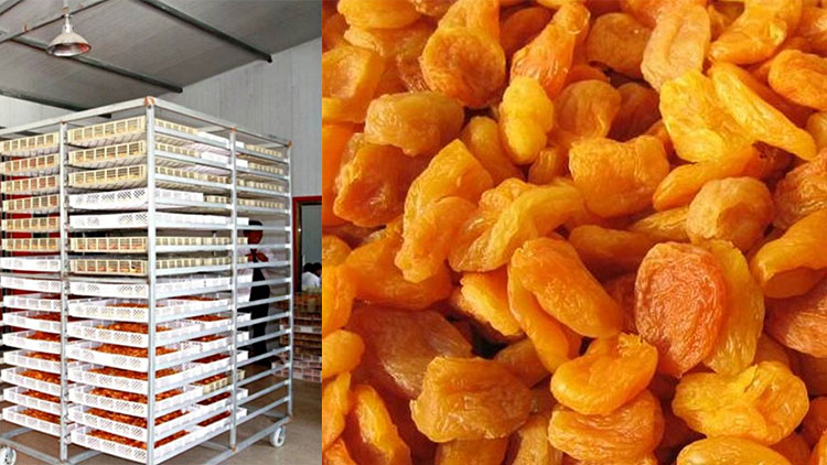 2. 將杏干放在物料盤上,推進(jìn)烘干房準(zhǔn)備烘干;
