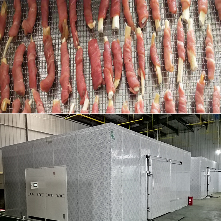 寵物食品烘干機的出現(xiàn)則一舉解決了上述烘干方式的弊端。作為一種接近自然晾干的溫和干燥方式,在干燥過程中食品表面水分蒸發(fā)速度與內(nèi)部水分向表面遷移速度比較接近,使干燥后的貓糧狗糧品質(zhì)好、色澤鮮、產(chǎn)品等級高;干燥過程中,循環(huán)空氣的溫度、濕度及循環(huán)流量可得到精確有效的控制,且溫度調(diào)節(jié)范圍為常溫到75℃,相對濕度調(diào)節(jié)范圍為5%~85%;可同時進行多品種、多種類的干燥,其密閉的烘干環(huán)境可以防止蚊蟲以及外部污染物接觸到烘干中的貓糧狗糧,確保安全衛(wèi)生。