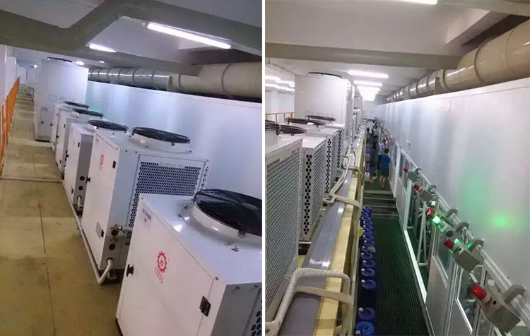 通常情況下,工業(yè)生產(chǎn)中的熱水需要達(dá)到70℃才能滿足生產(chǎn)需要,普通空氣源熱泵的出水溫度大多在55℃~60℃左右,超出這個溫度范圍設(shè)備壽命會大大縮短,且運行時故障率升高,影響正常的生產(chǎn)活動。正旭高溫?zé)岜迷?5℃的出水溫度以內(nèi)時,設(shè)備依然很穩(wěn)定,熱效率仍然很高,在60℃出水溫度以內(nèi)運行時比普通熱泵更節(jié)能。正旭復(fù)疊空氣源高溫變頻熱水機組即使在北方-35℃仍能產(chǎn)出80℃熱水并將COP值保持在1.5左右,因此成為工業(yè)生產(chǎn)中不可或缺的可再生能源設(shè)備。