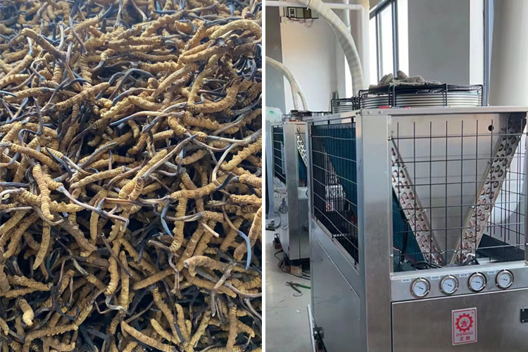 蟲草在采摘回來之后需要進行干燥處理,蟲草干燥條件較為苛刻。傳統(tǒng)的干燥方法一般是借助太陽晾曬或者燃煤鍋爐干燥。日光晾曬受天氣影響大,加上蟲草價格高昂,晾曬干燥無法控制蟲草干燥品質(zhì),容易造成大量成本支出。燃煤鍋爐火候難以控制,干燥品質(zhì)不均,再加上燃煤鍋爐在干燥過程中會產(chǎn)生大量有害氣體,對蟲草品質(zhì)造成污染,難以在市場賣出好價錢。所以蟲草干燥需要一種新型方式,空氣源熱泵烘干就是一個不錯的選擇。