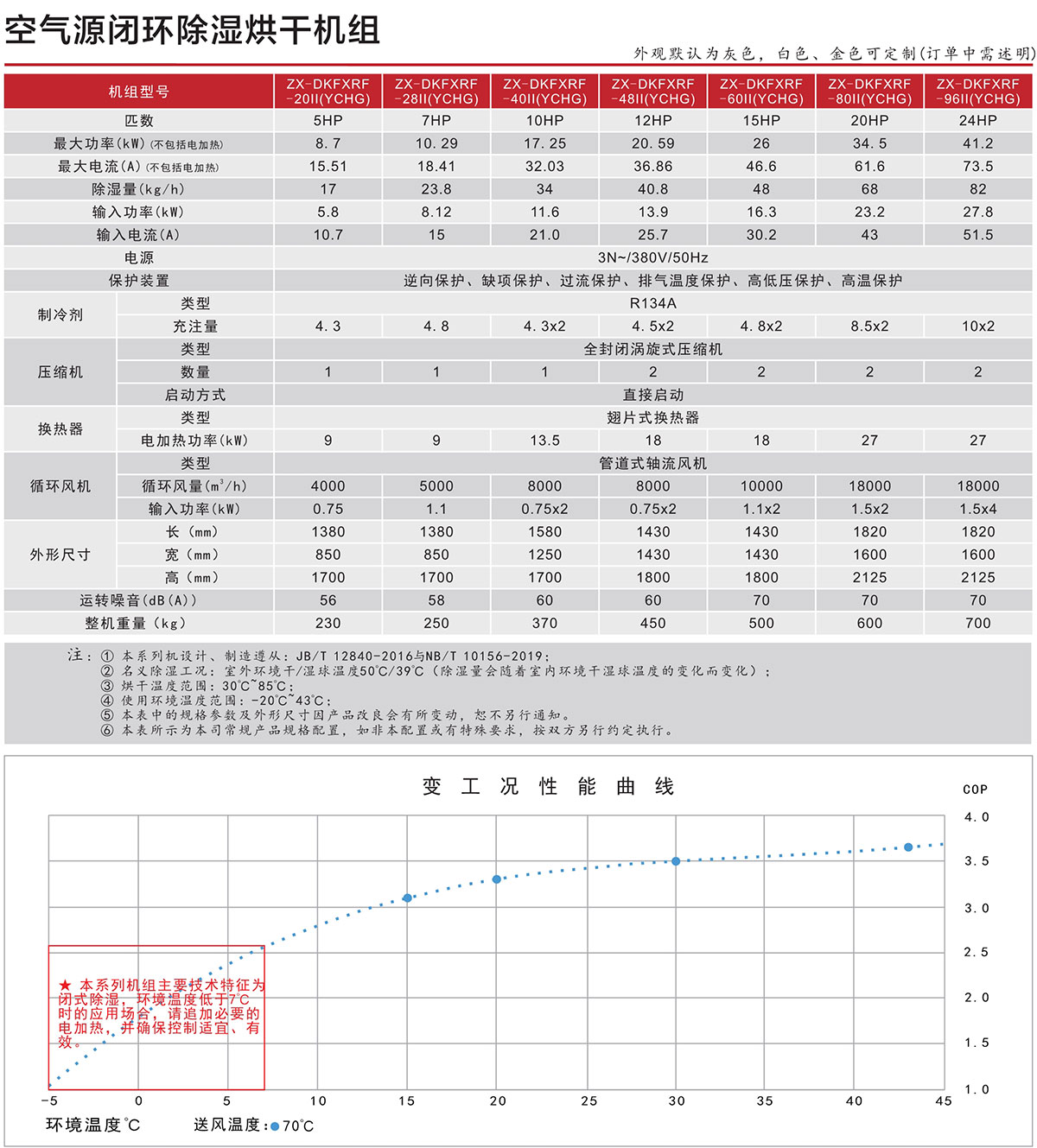 ●在能耗方面:機組的能耗僅為電阻加熱烘干的1/3-1/4左右,因為它在工作過程中利用了空氣中的能量,而不是純粹消耗電能。